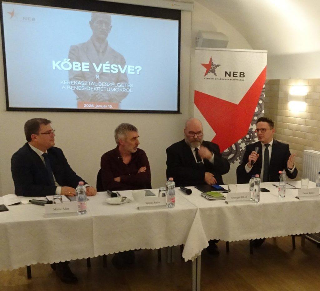A Nemzeti Emlékezet Bizottságának Vas utcai épületében szervezett 2026.január 15-i kerekasztal-beszélgetést bevezetve Földváryné Kiss Réka, a NEB elnöke Janics Kálmán felvidéki író A hontalanság évei című, először Svájcban, tehát nyugati emigrációban 1979-ban megjelent könyvének utolsó fejezetére A mitosz tovább él-re hivatkozott. Ebben ugyanis Janics Kálmán pont a Beneš-dekrétumok magyarokat és németeket sújtó rendeleteire hívta fel a figyelmet.